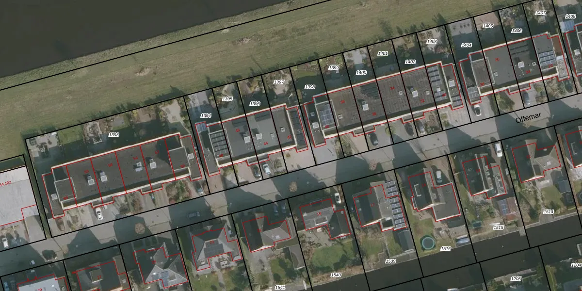 Het perceel waarop Offemar 42 staat heeft een oppervlakte van 356 m². Dit is een groot perceel. De perceeloppervlakte wordt geregistreerd door het Kadaster. Gedetailleerde informatie over de maten van dit perceel kunt u vinden in het rapport Kadastrale kaart met maatvoering van Offemar 42.
