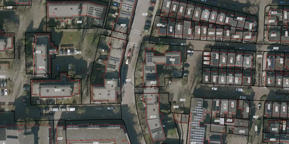 Oldegalileën 54 is gelegen op kadastraal perceel LWD00F7332. Deze kadastrale aanduiding is uniek en wordt gebruikt door het Kadaster om eigendomsrechten en andere zakelijke rechten vast te leggen. Het perceel maakt onderdeel uit van de kadastrale gemeente Leeuwarden.