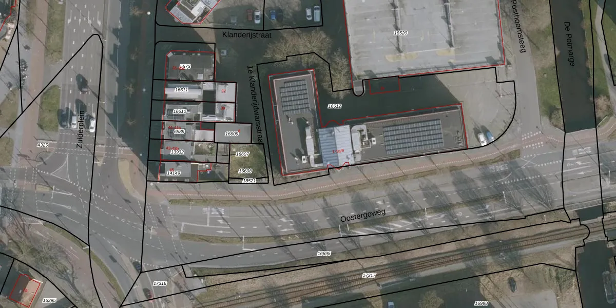 Oostergoweg 1-a-15 is gelegen op kadastraal perceel LWD00G16612. Deze kadastrale aanduiding is uniek en wordt gebruikt door het Kadaster om eigendomsrechten en andere zakelijke rechten vast te leggen. Het perceel maakt onderdeel uit van de kadastrale gemeente Leeuwarden.