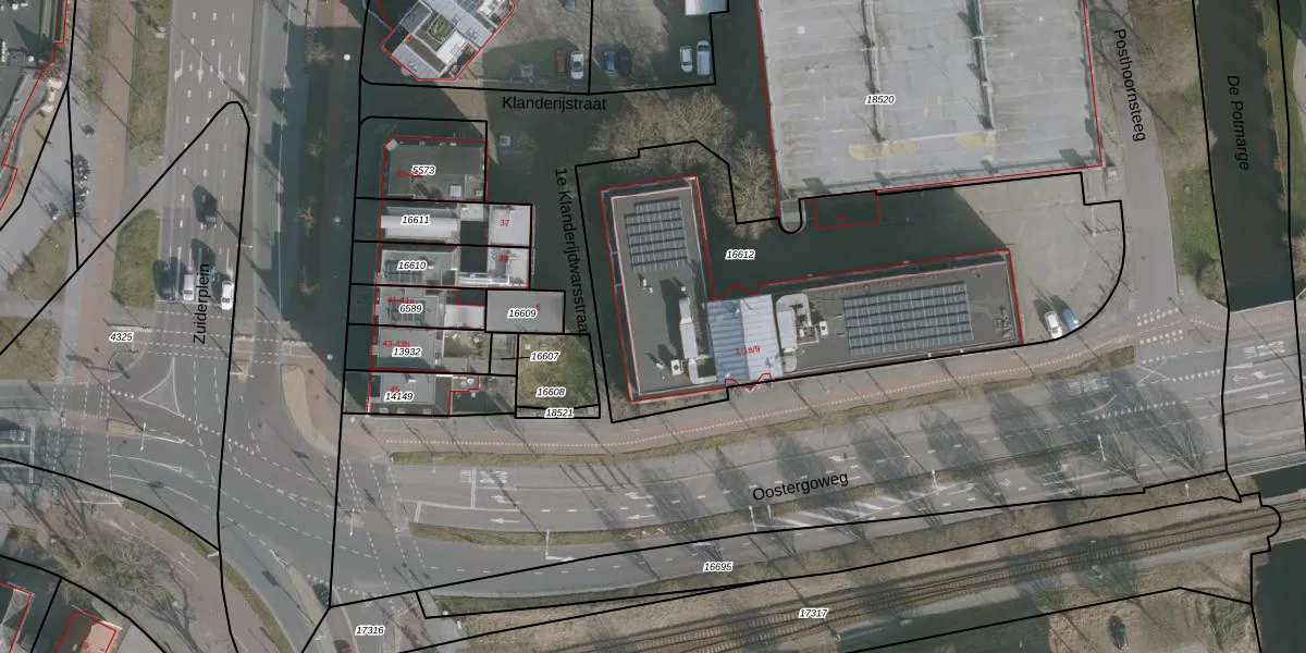 Oostergoweg 1-a-18 is gelegen op kadastraal perceel LWD00G16612. Deze kadastrale aanduiding is uniek en wordt gebruikt door het Kadaster om eigendomsrechten en andere zakelijke rechten vast te leggen. Het perceel maakt onderdeel uit van de kadastrale gemeente Leeuwarden.