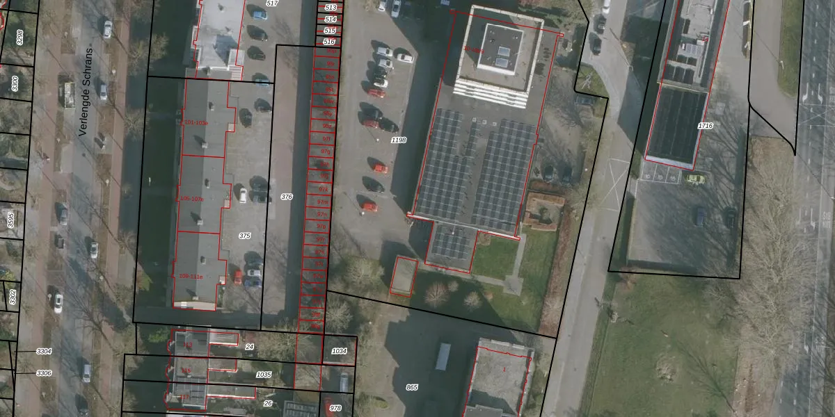 Het adres is gelegen op perceel 1198 in de sectie F en de kadastrale gemeente Huizum. De kadastrale aanduiding is aldus HZM00-F-1198. Het perceel is met 4922 m² relatief groot. Het gemiddelde ligt in de kadastrale gemeente Huizum op 1504,31 m². Het grootste perceel in de kadastrale gemeente is 75,1 ha. Het kleinste perceel heeft een oppervlakte van 0 m². Op het perceel liggen in totaal 34 adressen. De huidige grenzen van het perceel zijn digitaal in de Basisregistratie Kadaster (BRK) geregistreerd op 29-12-2008.