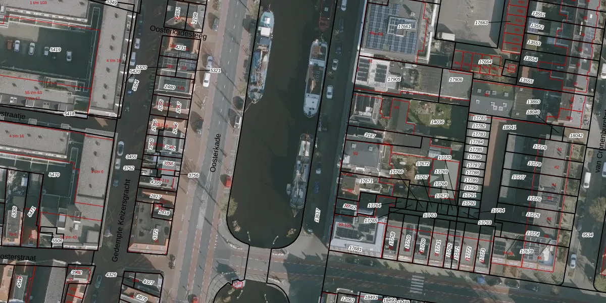 Het perceel waarop Oostergrachtswal 141 staat heeft een oppervlakte van 3,9 ha. Dit is een zeer groot perceel. De perceeloppervlakte wordt geregistreerd door het Kadaster. Gedetailleerde informatie over de maten van dit perceel kunt u vinden in het rapport Kadastrale kaart met maatvoering van Oostergrachtswal 141.