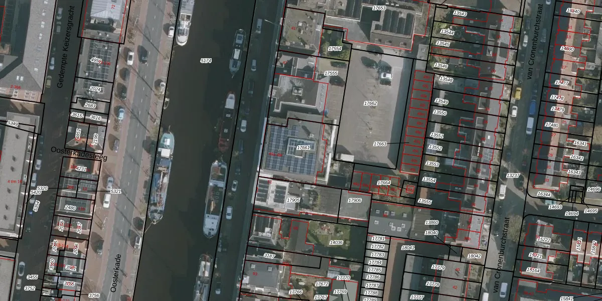 Het perceel waarop Oostergrachtswal 49-d staat heeft een oppervlakte van 534 m². Dit is een groot perceel. De perceeloppervlakte wordt geregistreerd door het Kadaster. Gedetailleerde informatie over de maten van dit perceel kunt u vinden in het rapport Kadastrale kaart met maatvoering van Oostergrachtswal 49-d.