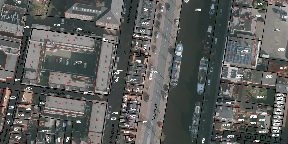 Het perceel waarop Oosterkade 109 staat heeft een oppervlakte van 40 m². Dit is een klein perceel. De perceeloppervlakte wordt geregistreerd door het Kadaster. Gedetailleerde informatie over de maten van dit perceel kunt u vinden in het rapport Kadastrale kaart met maatvoering van Oosterkade 109.