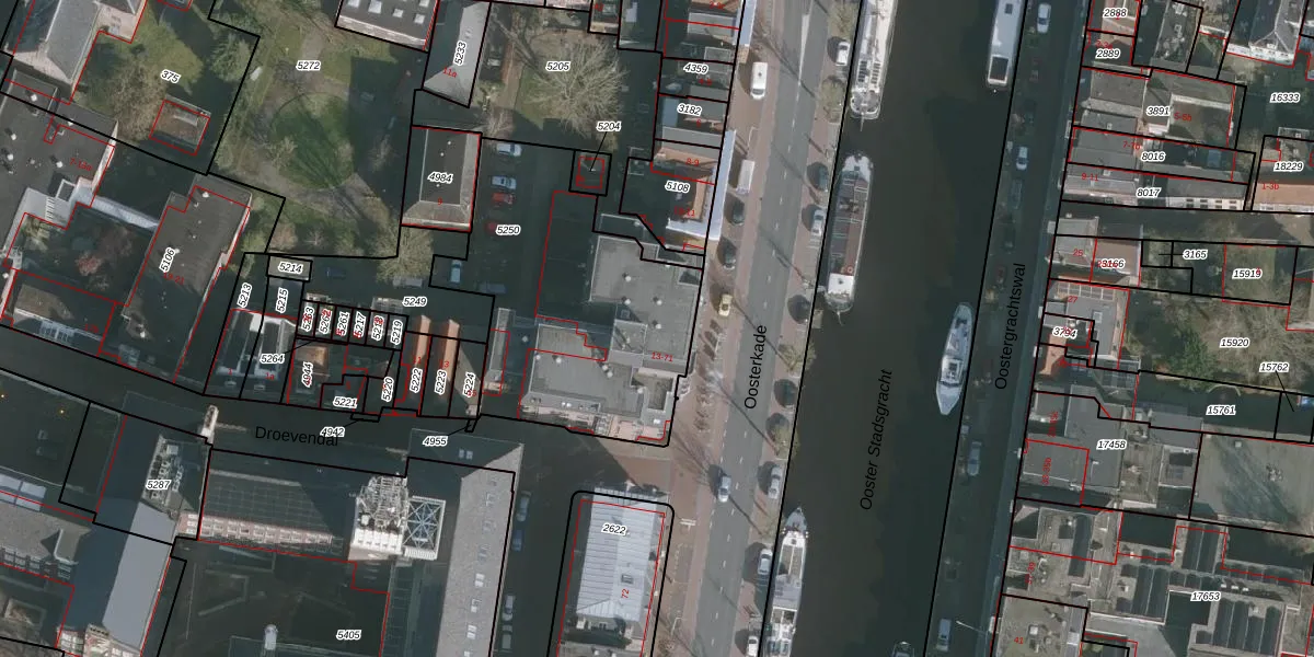 Oosterkade 41 is gelegen op kadastraal perceel LWD00B5250. Deze kadastrale aanduiding is uniek en wordt gebruikt door het Kadaster om eigendomsrechten en andere zakelijke rechten vast te leggen. Het perceel maakt onderdeel uit van de kadastrale gemeente Leeuwarden.