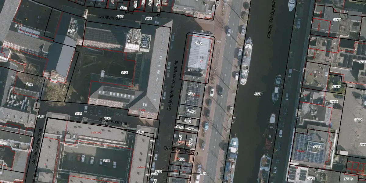 Het perceel waarop Oosterkade 79 staat heeft een oppervlakte van 164 m². Dit is een middelgroot perceel. De perceeloppervlakte wordt geregistreerd door het Kadaster. Gedetailleerde informatie over de maten van dit perceel kunt u vinden in het rapport Kadastrale kaart met maatvoering van Oosterkade 79.