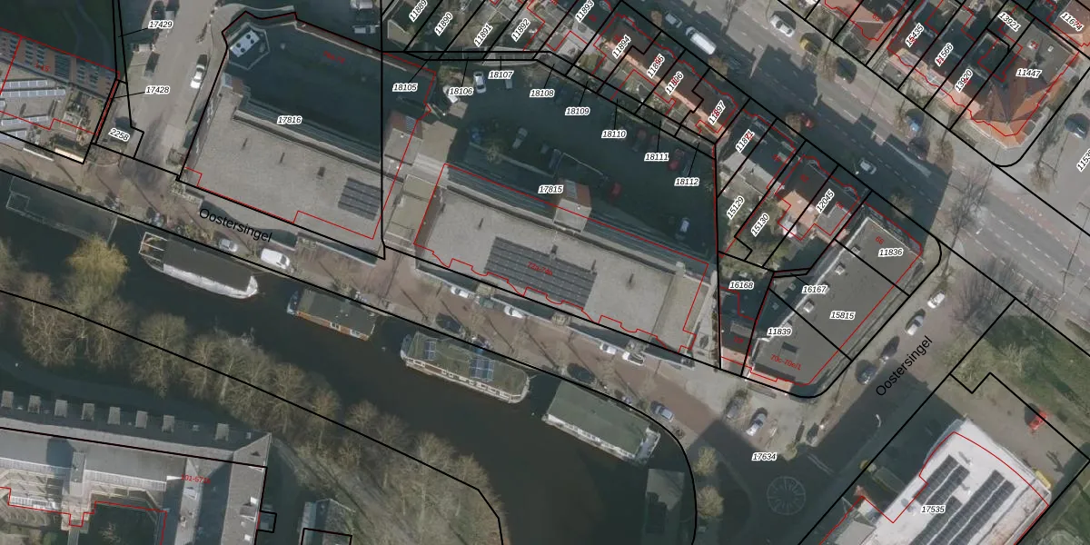 Het perceel waarop Oostersingel 72-w staat heeft een oppervlakte van 2492 m². Dit is een zeer groot perceel. De perceeloppervlakte wordt geregistreerd door het Kadaster. Gedetailleerde informatie over de maten van dit perceel kunt u vinden in het rapport Kadastrale kaart met maatvoering van Oostersingel 72-w.