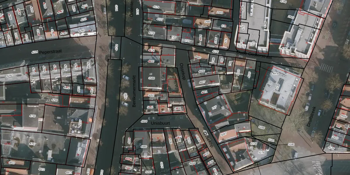 Het perceel waarop Ossekop 2-c staat heeft een oppervlakte van 310 m². Dit is een groot perceel. De perceeloppervlakte wordt geregistreerd door het Kadaster. Gedetailleerde informatie over de maten van dit perceel kunt u vinden in het rapport Kadastrale kaart met maatvoering van Ossekop 2-c.