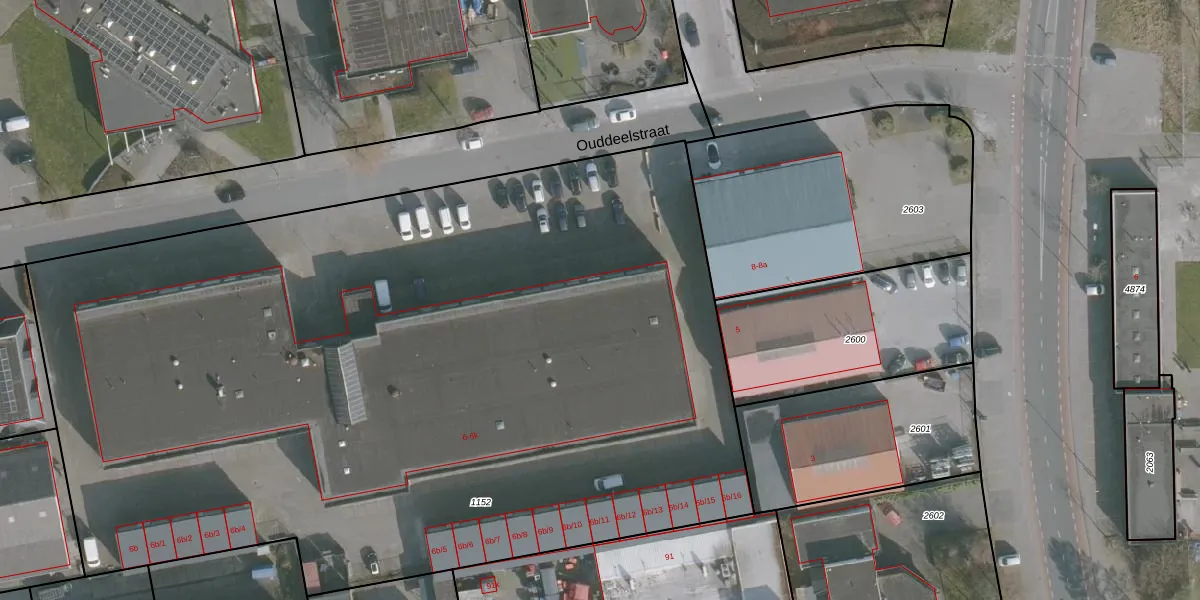 Het perceel waarop Ouddeelstraat 6-a-16 staat heeft een oppervlakte van 6650 m². Dit is een zeer groot perceel. De perceeloppervlakte wordt geregistreerd door het Kadaster. Gedetailleerde informatie over de maten van dit perceel kunt u vinden in het rapport Kadastrale kaart met maatvoering van Ouddeelstraat 6-a-16.