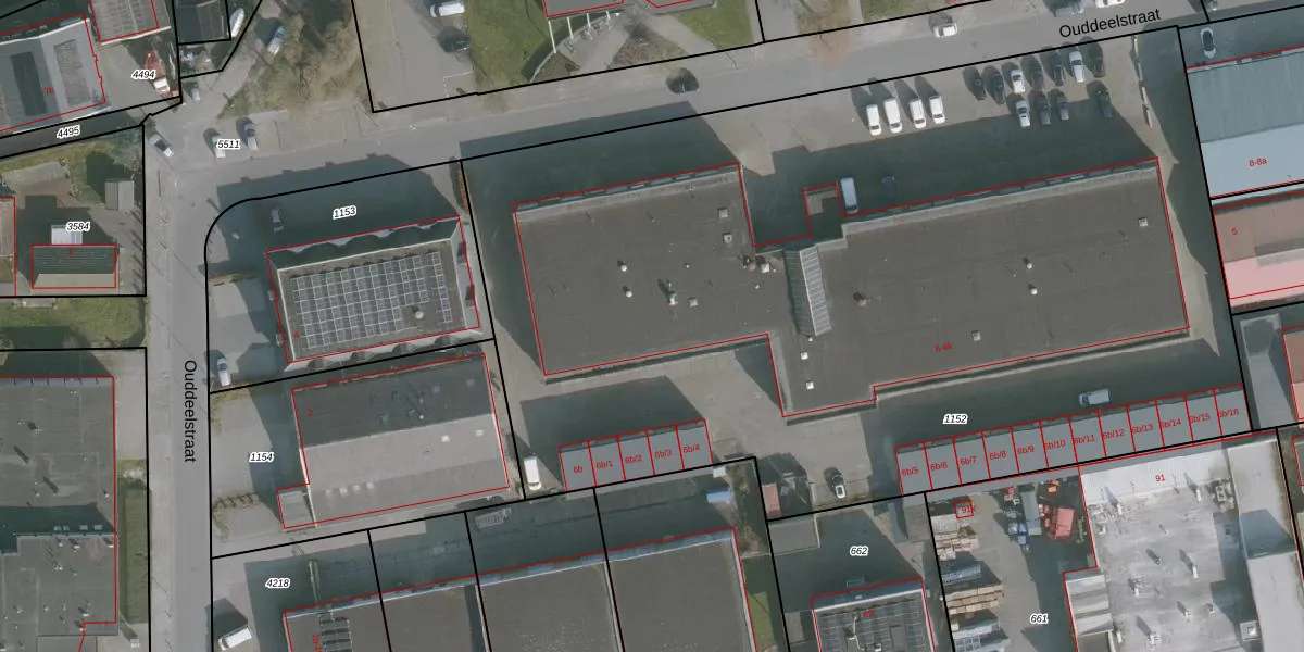 Het perceel waarop Ouddeelstraat 6-a-12 staat heeft een oppervlakte van 6650 m². Dit is een zeer groot perceel. De perceeloppervlakte wordt geregistreerd door het Kadaster. Gedetailleerde informatie over de maten van dit perceel kunt u vinden in het rapport Kadastrale kaart met maatvoering van Ouddeelstraat 6-a-12.