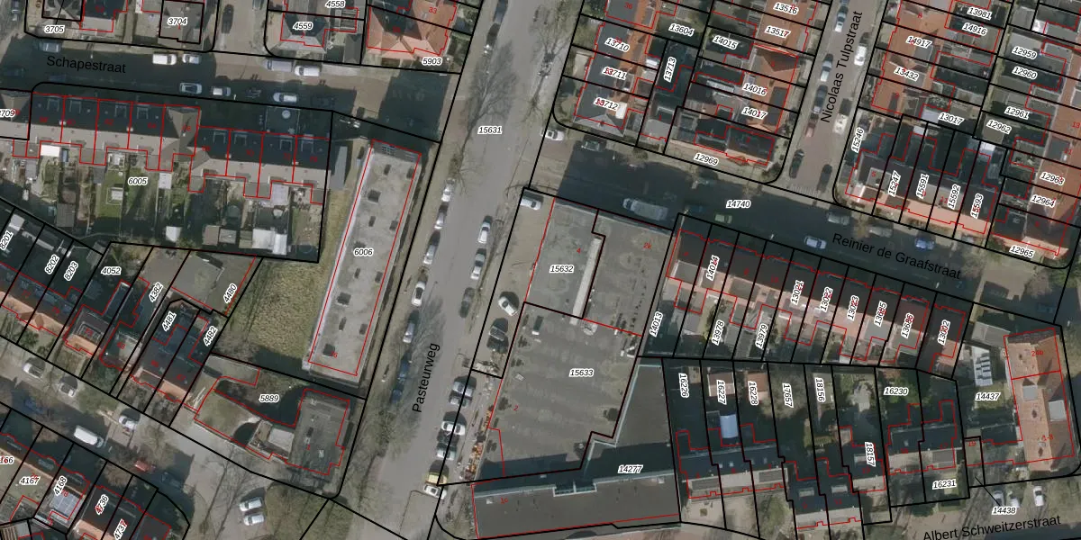 Gebruik de zoekbalk of klik op een perceel voor informatie over de adressen binnen dit perceel.