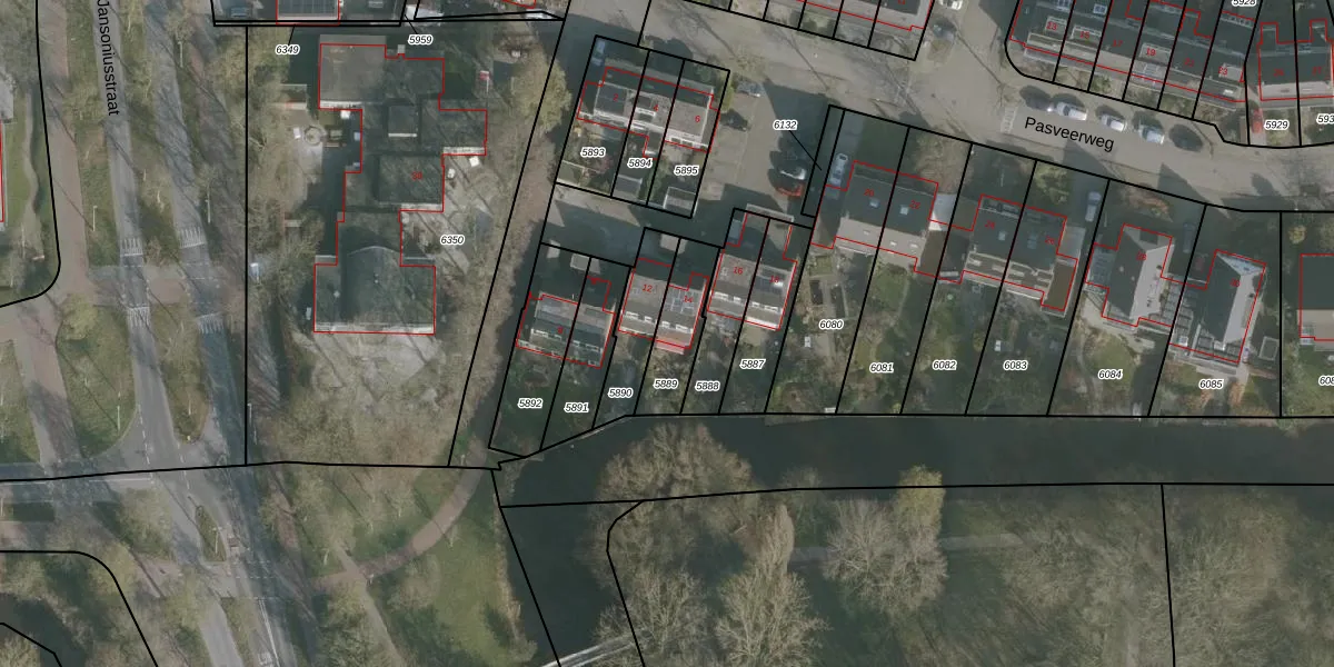 Pasveerweg 14 is gelegen op kadastraal perceel HZM00B5889. Deze kadastrale aanduiding is uniek en wordt gebruikt door het Kadaster om eigendomsrechten en andere zakelijke rechten vast te leggen. Het perceel maakt onderdeel uit van de kadastrale gemeente Huizum.