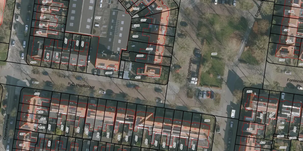 Het perceel waarop P.C. Hooftstraat 2 staat heeft een oppervlakte van 374 m². Dit is een groot perceel. De perceeloppervlakte wordt geregistreerd door het Kadaster. Gedetailleerde informatie over de maten van dit perceel kunt u vinden in het rapport Kadastrale kaart met maatvoering van P.C. Hooftstraat 2.