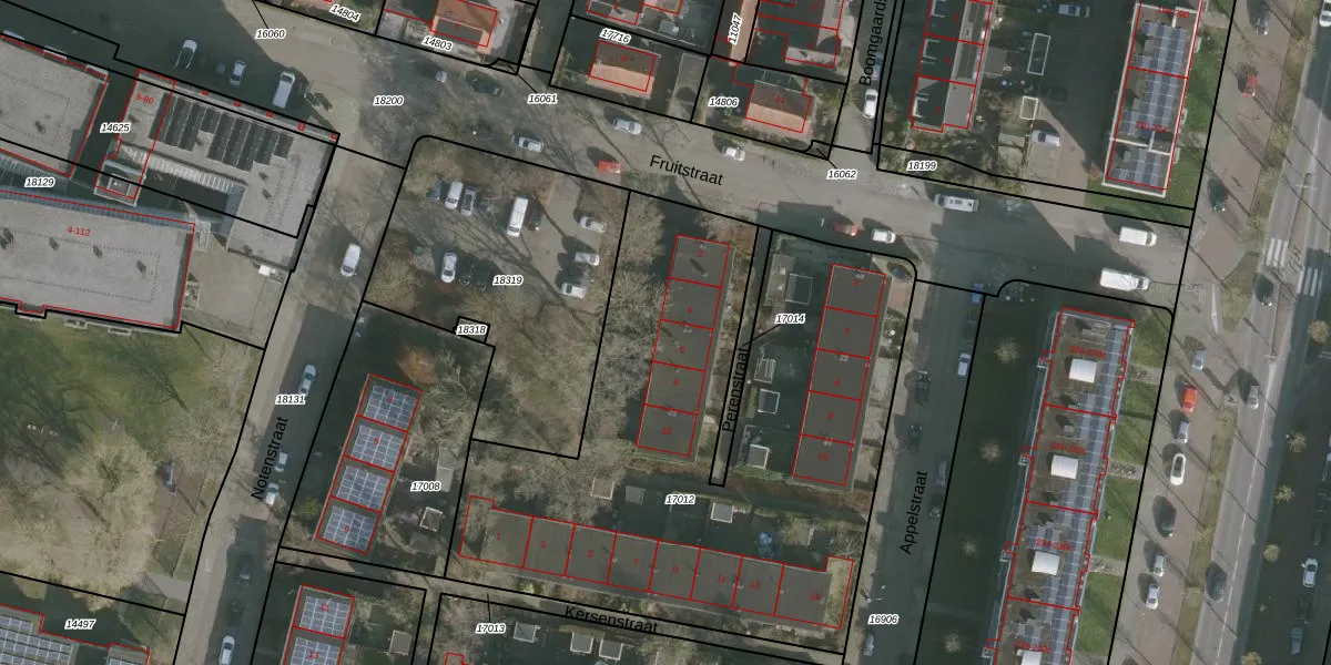 Het perceel waarop Perenstraat 6 staat heeft een oppervlakte van 2990 m². Dit is een zeer groot perceel. De perceeloppervlakte wordt geregistreerd door het Kadaster. Gedetailleerde informatie over de maten van dit perceel kunt u vinden in het rapport Kadastrale kaart met maatvoering van Perenstraat 6.