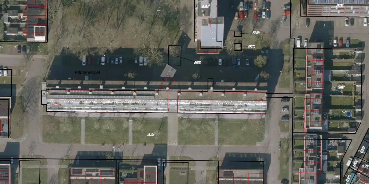 Het perceel waarop Pilotenespel 1-e staat heeft een oppervlakte van 3175 m². Dit is een zeer groot perceel. De perceeloppervlakte wordt geregistreerd door het Kadaster. Gedetailleerde informatie over de maten van dit perceel kunt u vinden in het rapport Kadastrale kaart met maatvoering van Pilotenespel 1-e.
