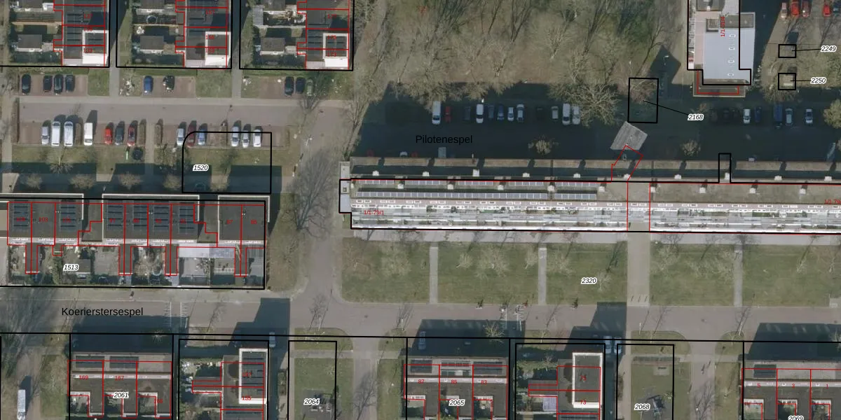 Het perceel waarop Pilotenespel 15-1 staat heeft een oppervlakte van 3175 m². Dit is een zeer groot perceel. De perceeloppervlakte wordt geregistreerd door het Kadaster. Gedetailleerde informatie over de maten van dit perceel kunt u vinden in het rapport Kadastrale kaart met maatvoering van Pilotenespel 15-1.