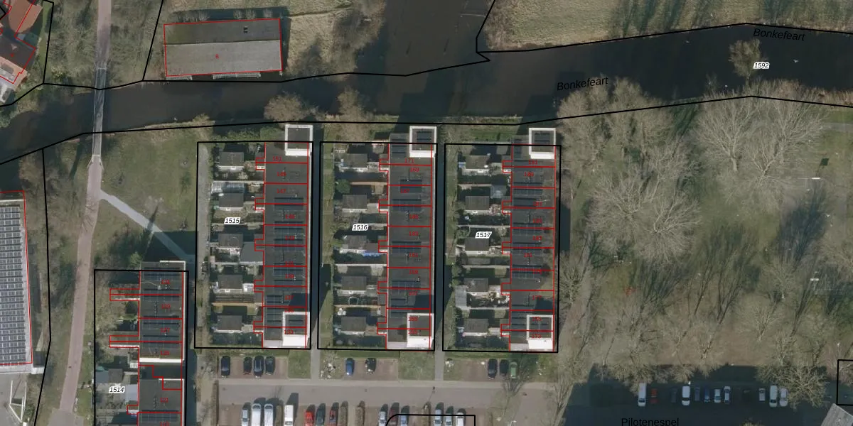 Het perceel waarop Pilotenespel 165 staat heeft een oppervlakte van 1323 m². Dit is een zeer groot perceel. De perceeloppervlakte wordt geregistreerd door het Kadaster. Gedetailleerde informatie over de maten van dit perceel kunt u vinden in het rapport Kadastrale kaart met maatvoering van Pilotenespel 165.