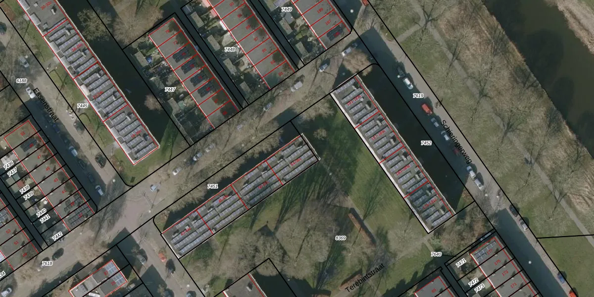 Het perceel waarop het adres ligt is LWD00-F-7451. De afkorting 'LWD00' staat voor kadastrale gemeente Leeuwarden. De gemiddelde perceelgrootte in Leeuwarden is 1522,59 m². Dit perceel is kleiner: de perceeloppervlakte bedraagt 946 m². De grootste perceeloppervlakte in de kadastrale gemeente is 1,54 km². De kleinste oppervlakte bedraagt 0 m². Er zijn 24 adressen aanwezig op het perceel. In de Basisregistratie Kadaster (BRK) werden de grenzen van het perceel geregistreerd op 13-12-2000.