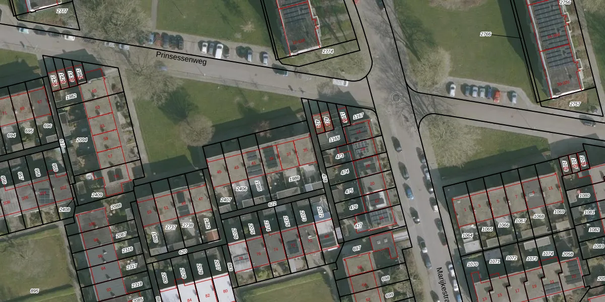 Het perceel waarop Prinsessenweg 35 staat heeft een oppervlakte van 409 m². Dit is een groot perceel. De perceeloppervlakte wordt geregistreerd door het Kadaster. Gedetailleerde informatie over de maten van dit perceel kunt u vinden in het rapport Kadastrale kaart met maatvoering van Prinsessenweg 35.