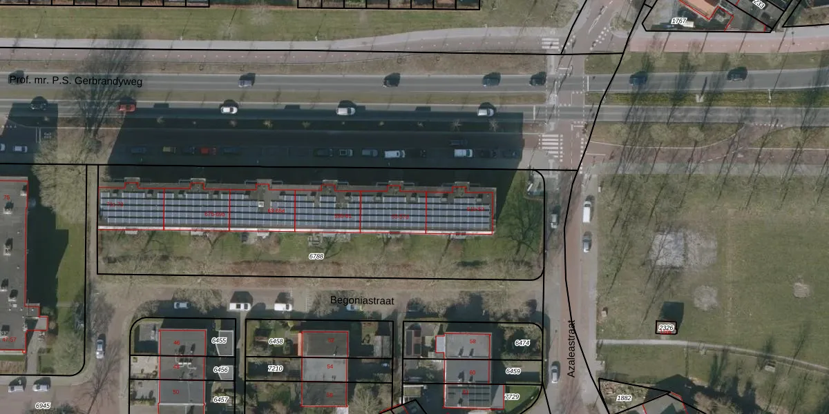 Het perceel waarop Prof. mr. P.S. Gerbrandyweg 55-c staat heeft een oppervlakte van 2875 m². Dit is een zeer groot perceel. De perceeloppervlakte wordt geregistreerd door het Kadaster. Gedetailleerde informatie over de maten van dit perceel kunt u vinden in het rapport Kadastrale kaart met maatvoering van Prof. mr. P.S. Gerbrandyweg 55-c.