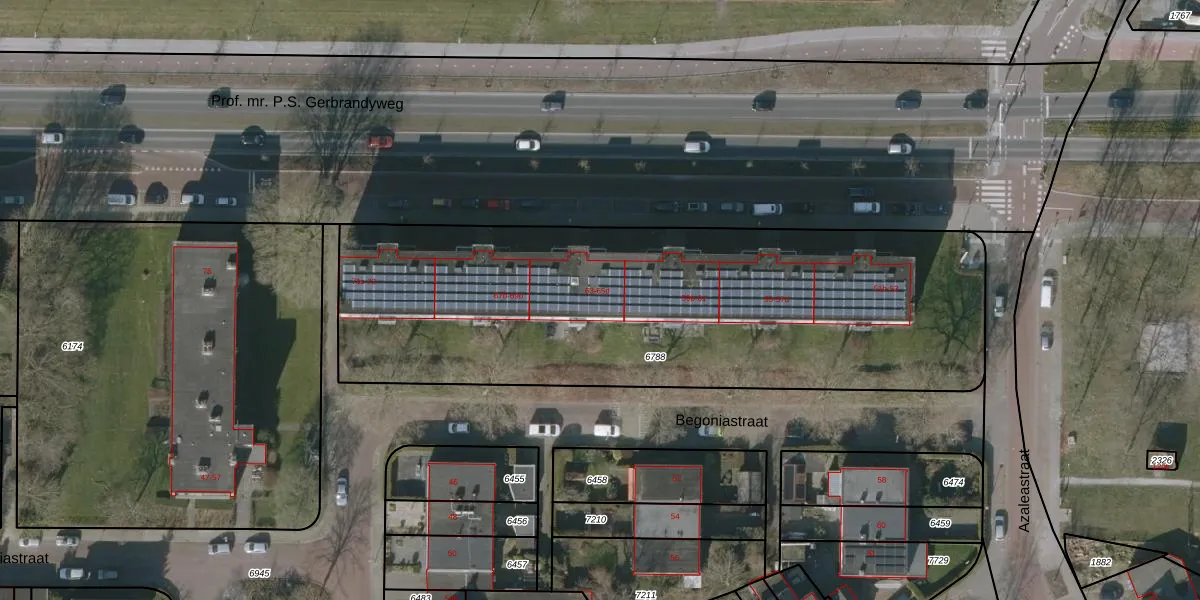 Het perceel waarop Prof. mr. P.S. Gerbrandyweg 63-b staat heeft een oppervlakte van 2875 m². Dit is een zeer groot perceel. De perceeloppervlakte wordt geregistreerd door het Kadaster. Gedetailleerde informatie over de maten van dit perceel kunt u vinden in het rapport Kadastrale kaart met maatvoering van Prof. mr. P.S. Gerbrandyweg 63-b.