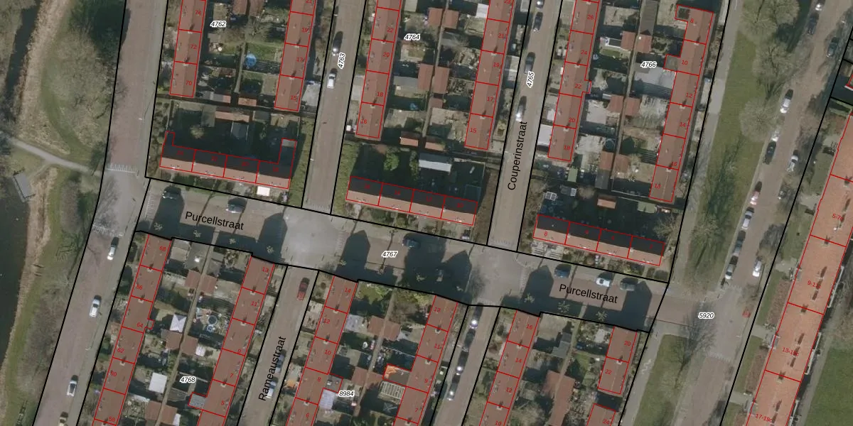 Het perceel waarop Purcellstraat 12 staat heeft een oppervlakte van 3100 m². Dit is een zeer groot perceel. De perceeloppervlakte wordt geregistreerd door het Kadaster. Gedetailleerde informatie over de maten van dit perceel kunt u vinden in het rapport Kadastrale kaart met maatvoering van Purcellstraat 12.