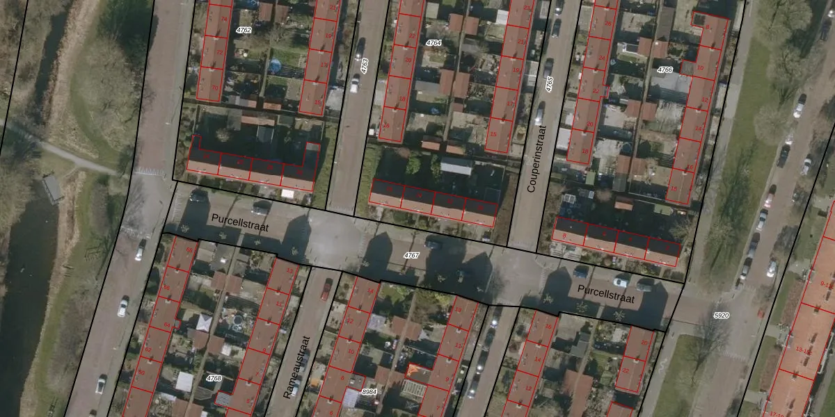 Het perceel waarop Purcellstraat 14 staat heeft een oppervlakte van 3100 m². Dit is een zeer groot perceel. De perceeloppervlakte wordt geregistreerd door het Kadaster. Gedetailleerde informatie over de maten van dit perceel kunt u vinden in het rapport Kadastrale kaart met maatvoering van Purcellstraat 14.