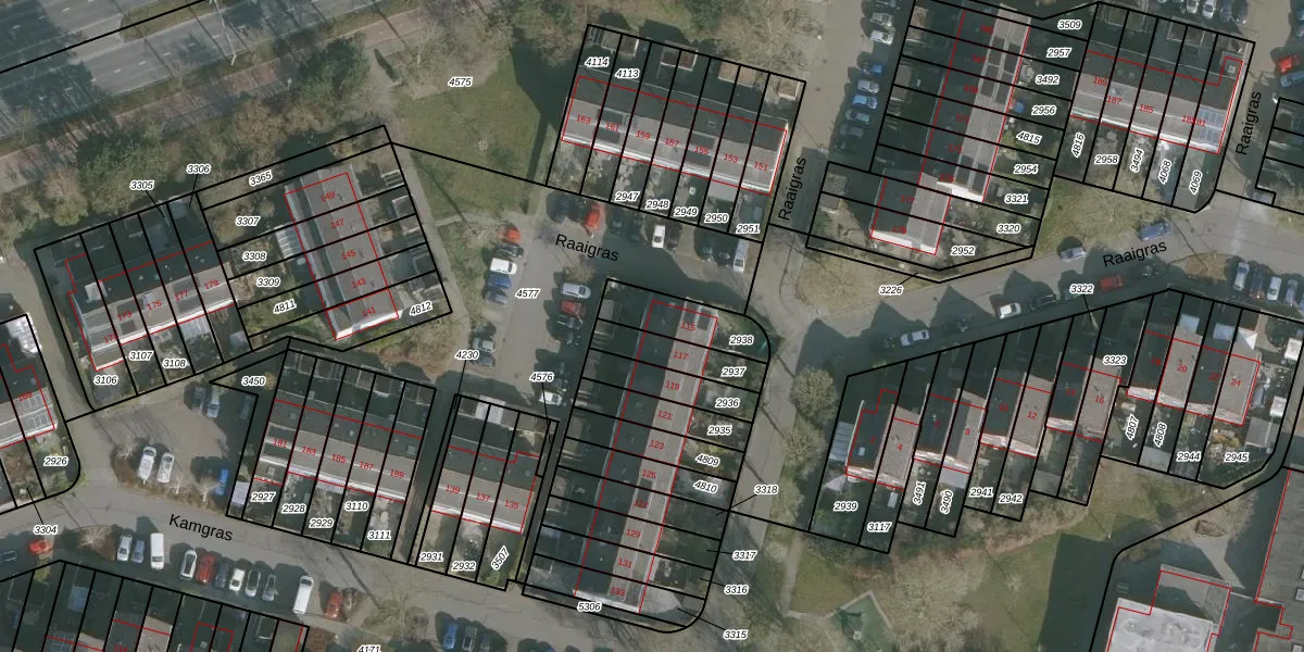 Het perceel waarop Raaigras 115 staat heeft een oppervlakte van 176 m². Dit is een middelgroot perceel. De perceeloppervlakte wordt geregistreerd door het Kadaster. Gedetailleerde informatie over de maten van dit perceel kunt u vinden in het rapport Kadastrale kaart met maatvoering van Raaigras 115.