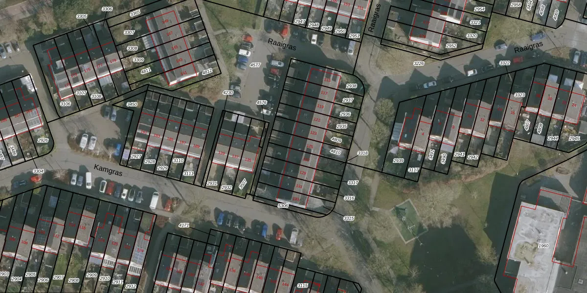 Het perceel waarop Raaigras 125 staat heeft een oppervlakte van 118 m². Dit is een middelgroot perceel. De perceeloppervlakte wordt geregistreerd door het Kadaster. Gedetailleerde informatie over de maten van dit perceel kunt u vinden in het rapport Kadastrale kaart met maatvoering van Raaigras 125.