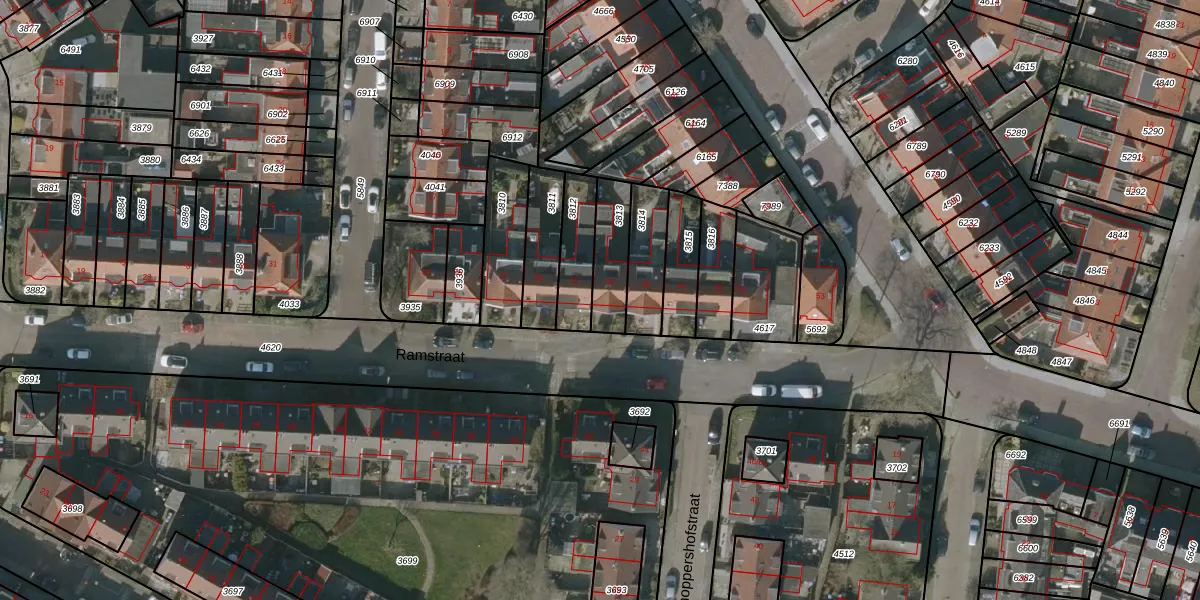 Gebruik de zoekbalk of klik op een perceel voor informatie over de adressen binnen dit perceel.
