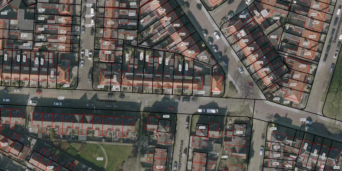 Het perceel waarop Ramstraat 45 staat heeft een oppervlakte van 147 m². Dit is een middelgroot perceel. De perceeloppervlakte wordt geregistreerd door het Kadaster. Gedetailleerde informatie over de maten van dit perceel kunt u vinden in het rapport Kadastrale kaart met maatvoering van Ramstraat 45.