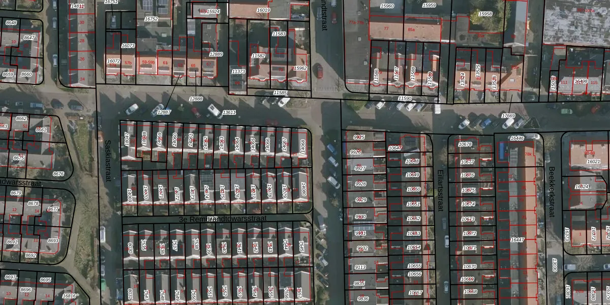 Gebruik de zoekbalk of klik op een perceel voor informatie over de adressen binnen dit perceel.