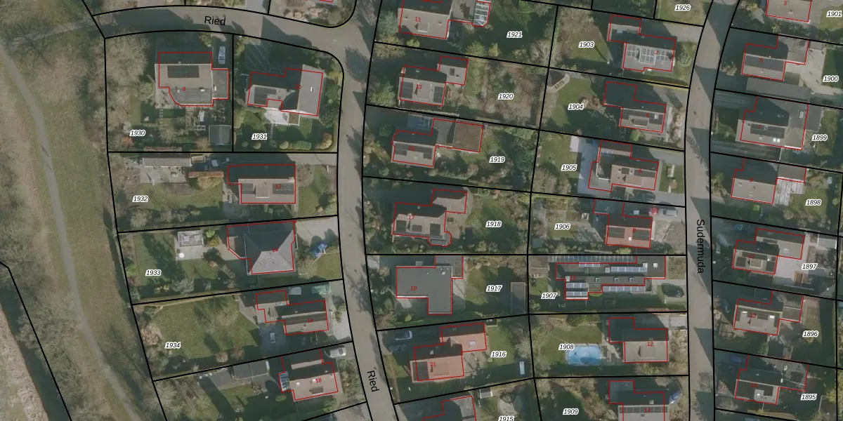 Het perceel waarop Ried 17 staat heeft een oppervlakte van 658 m². Dit is een groot perceel. De perceeloppervlakte wordt geregistreerd door het Kadaster. Gedetailleerde informatie over de maten van dit perceel kunt u vinden in het rapport Kadastrale kaart met maatvoering van Ried 17.