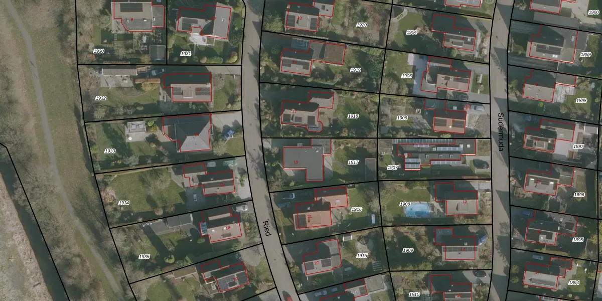 Het perceel waarop Ried 19 staat heeft een oppervlakte van 607 m². Dit is een groot perceel. De perceeloppervlakte wordt geregistreerd door het Kadaster. Gedetailleerde informatie over de maten van dit perceel kunt u vinden in het rapport Kadastrale kaart met maatvoering van Ried 19.