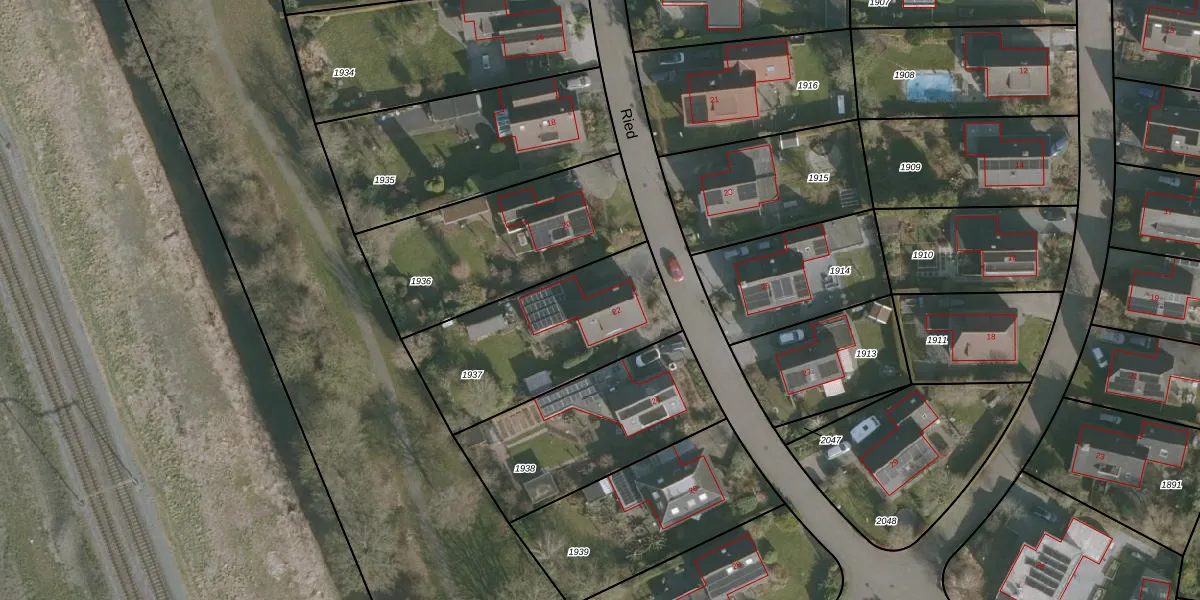 Het perceel waarop Ried 22 staat heeft een oppervlakte van 737 m². Dit is een groot perceel. De perceeloppervlakte wordt geregistreerd door het Kadaster. Gedetailleerde informatie over de maten van dit perceel kunt u vinden in het rapport Kadastrale kaart met maatvoering van Ried 22.