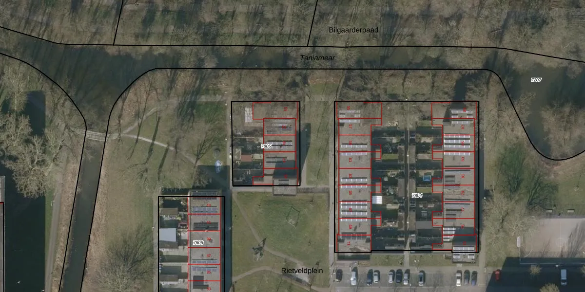 Rietveldplein 49 is gelegen op kadastraal perceel LWD00E7805. Deze kadastrale aanduiding is uniek en wordt gebruikt door het Kadaster om eigendomsrechten en andere zakelijke rechten vast te leggen. Het perceel maakt onderdeel uit van de kadastrale gemeente Leeuwarden.