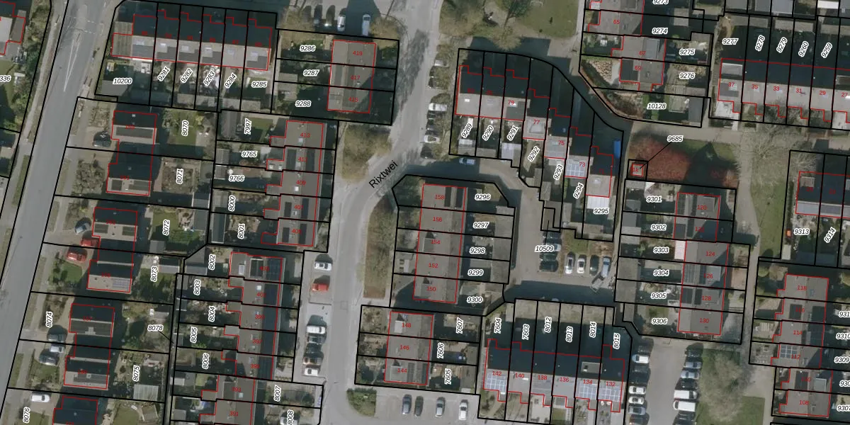 Rixtwei 156 is gelegen op kadastraal perceel LWD00D9297. Deze kadastrale aanduiding is uniek en wordt gebruikt door het Kadaster om eigendomsrechten en andere zakelijke rechten vast te leggen. Het perceel maakt onderdeel uit van de kadastrale gemeente Leeuwarden.