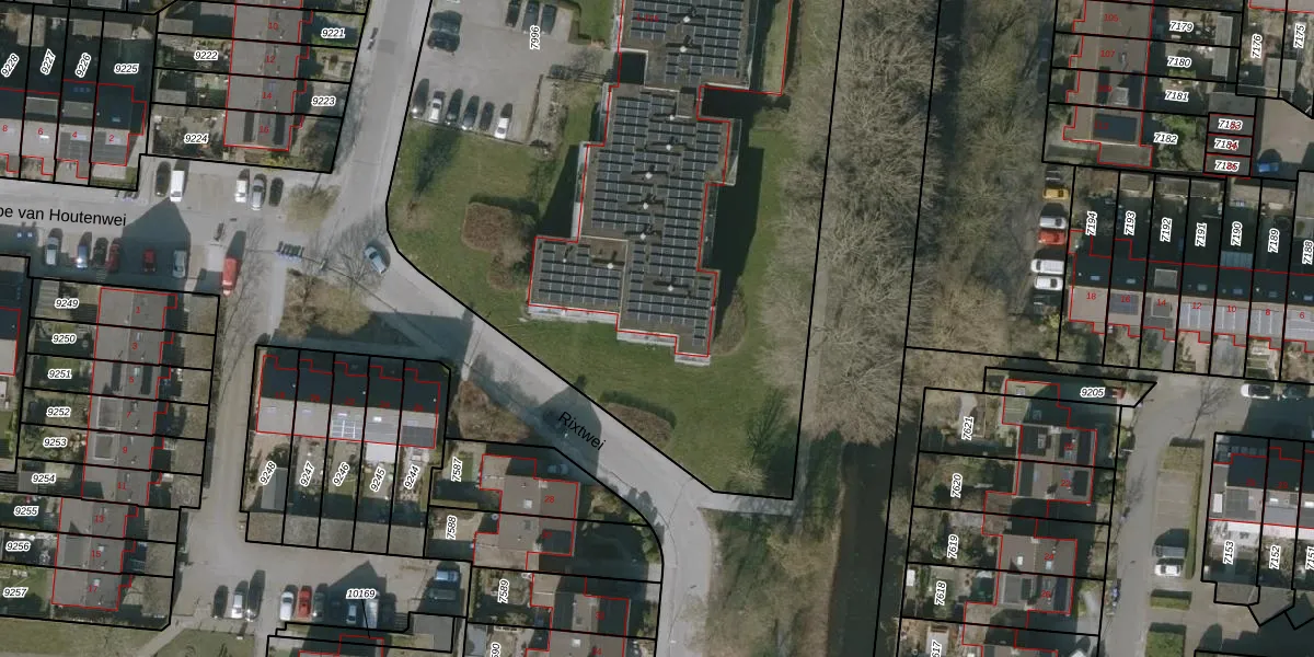 Het perceel waarop Rixtwei 173 staat heeft een oppervlakte van 5235 m². Dit is een zeer groot perceel. De perceeloppervlakte wordt geregistreerd door het Kadaster. Gedetailleerde informatie over de maten van dit perceel kunt u vinden in het rapport Kadastrale kaart met maatvoering van Rixtwei 173.
