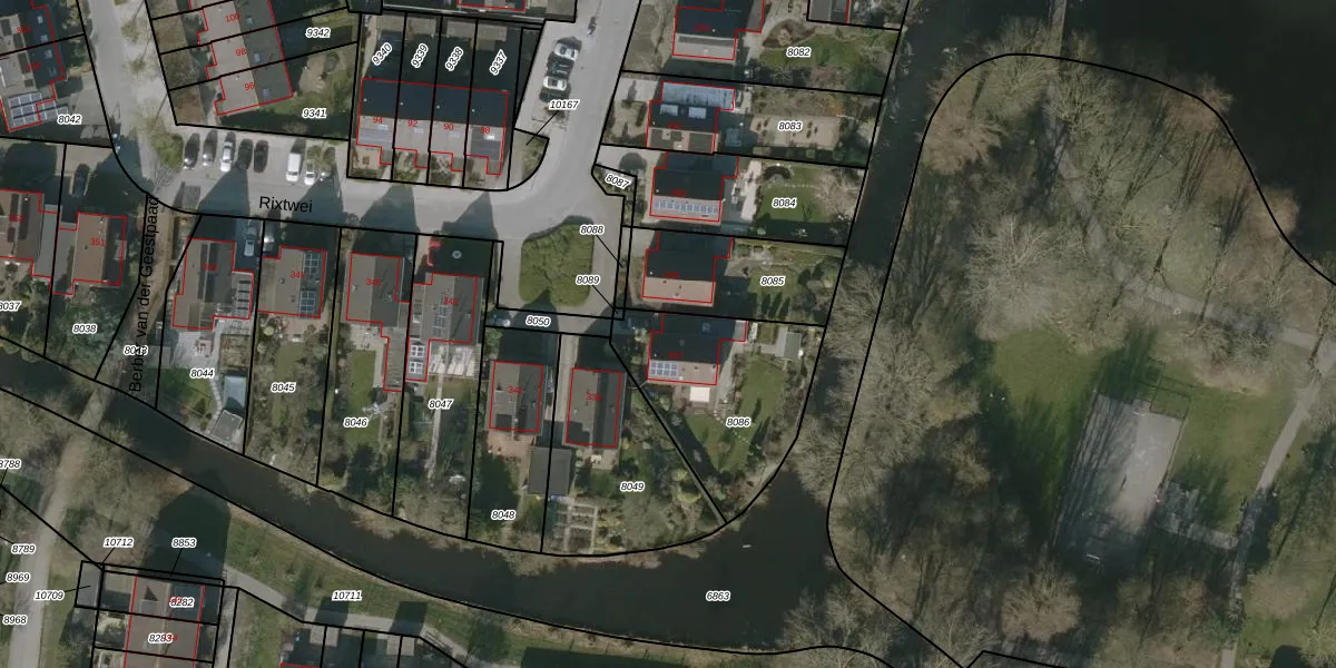 Gebruik de zoekbalk of klik op een perceel voor informatie over de adressen binnen dit perceel.