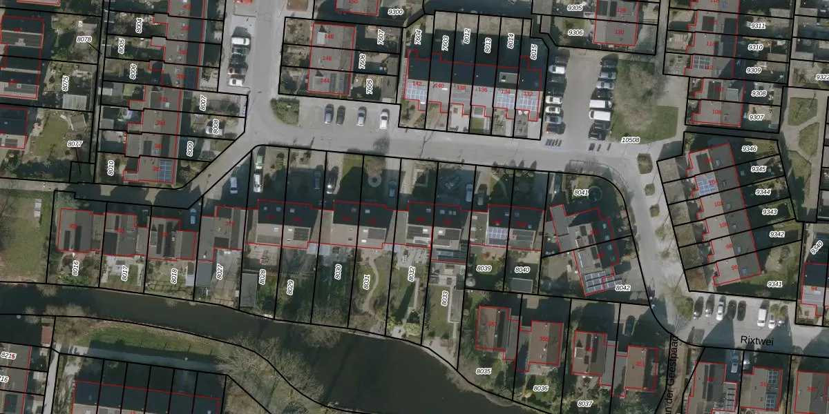 Het perceel waarop Rixtwei 369 staat heeft een oppervlakte van 395 m². Dit is een groot perceel. De perceeloppervlakte wordt geregistreerd door het Kadaster. Gedetailleerde informatie over de maten van dit perceel kunt u vinden in het rapport Kadastrale kaart met maatvoering van Rixtwei 369.