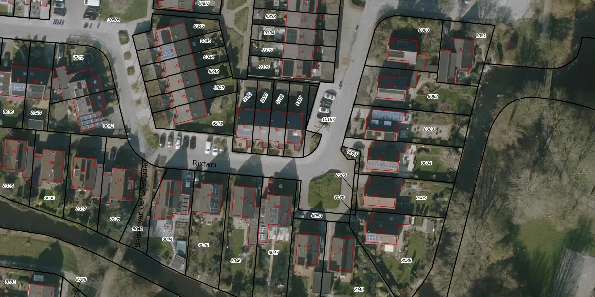 Het perceel waarop Rixtwei 88 staat heeft een oppervlakte van 175 m². Dit is een middelgroot perceel. De perceeloppervlakte wordt geregistreerd door het Kadaster. Gedetailleerde informatie over de maten van dit perceel kunt u vinden in het rapport Kadastrale kaart met maatvoering van Rixtwei 88.
