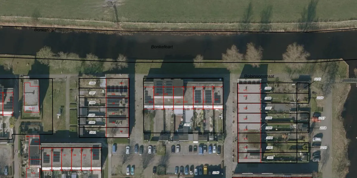 Robinsonstraat 111 is gelegen op kadastraal perceel LWD00H1371. Deze kadastrale aanduiding is uniek en wordt gebruikt door het Kadaster om eigendomsrechten en andere zakelijke rechten vast te leggen. Het perceel maakt onderdeel uit van de kadastrale gemeente Leeuwarden.