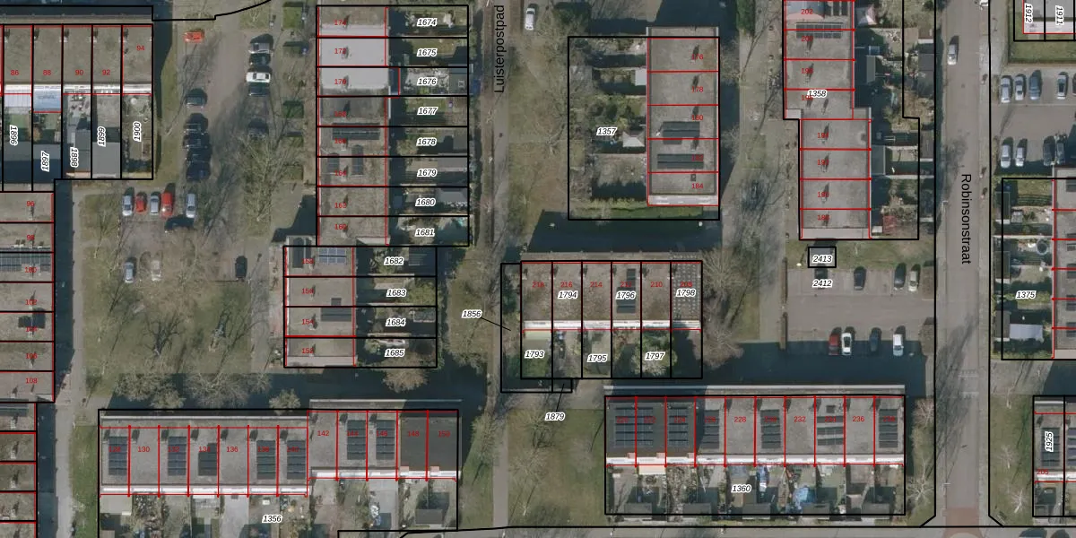 Gebruik de zoekbalk of klik op een perceel voor informatie over de adressen binnen dit perceel.