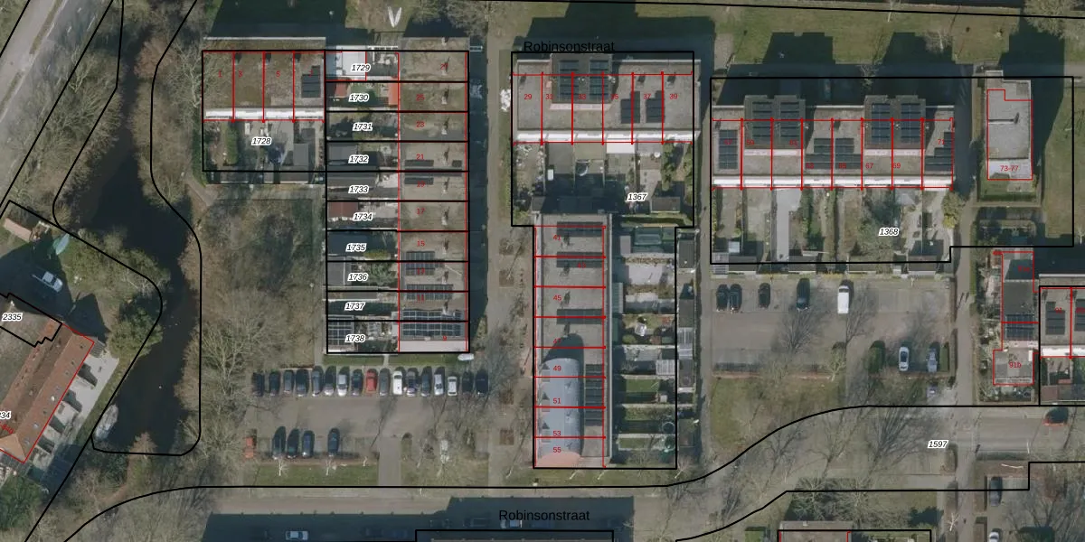 Robinsonstraat 43 is gelegen op kadastraal perceel LWD00H1367. Deze kadastrale aanduiding is uniek en wordt gebruikt door het Kadaster om eigendomsrechten en andere zakelijke rechten vast te leggen. Het perceel maakt onderdeel uit van de kadastrale gemeente Leeuwarden.