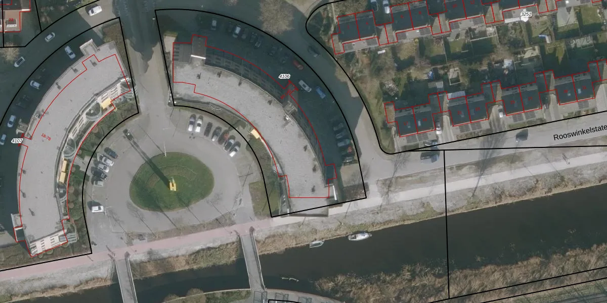 Rooswinkelstate 128 is gelegen op kadastraal perceel LWD00K4106. Deze kadastrale aanduiding is uniek en wordt gebruikt door het Kadaster om eigendomsrechten en andere zakelijke rechten vast te leggen. Het perceel maakt onderdeel uit van de kadastrale gemeente Leeuwarden.