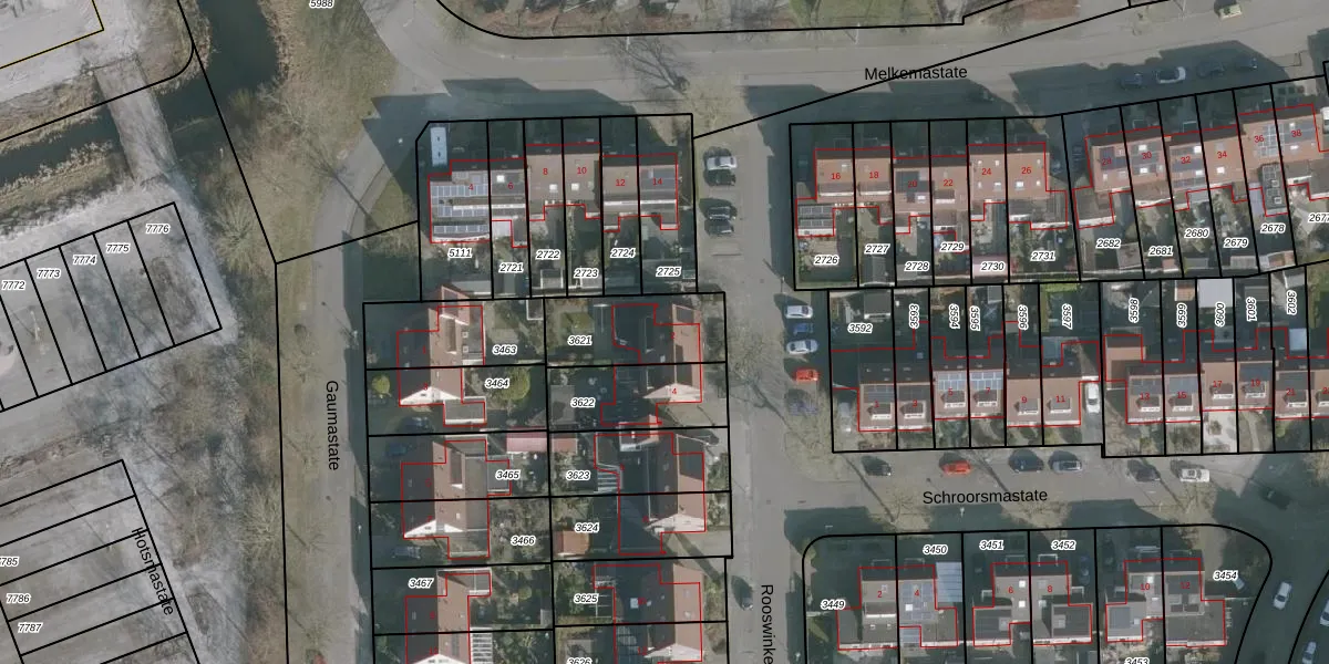Gebruik de zoekbalk of klik op een perceel voor informatie over de adressen binnen dit perceel.