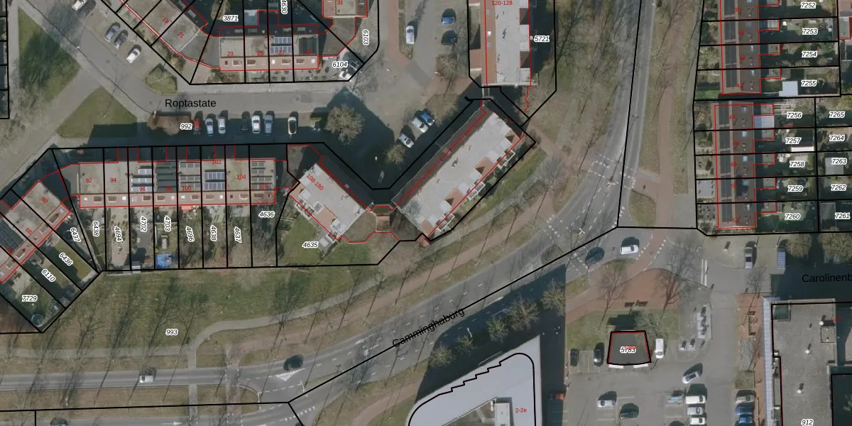 Roptastate 166 is gelegen op kadastraal perceel LWD00K4635. Deze kadastrale aanduiding is uniek en wordt gebruikt door het Kadaster om eigendomsrechten en andere zakelijke rechten vast te leggen. Het perceel maakt onderdeel uit van de kadastrale gemeente Leeuwarden.