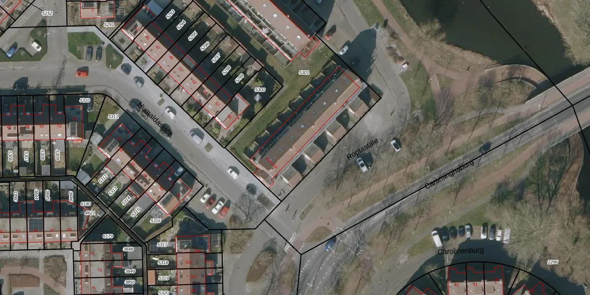Het adres is gelegen op perceel 5301 in de sectie K en de kadastrale gemeente Leeuwarden. De kadastrale aanduiding is aldus LWD00-K-5301. De gemiddelde perceeloppervlakte in de kadastrale gemeente Leeuwarden is 1523,19 m². Dit perceel is met zijn 3234 m² dus groter dan gemiddeld. Het kleinste perceel in de kadastrale gemeente is 0 m² groot. De grootste perceeloppervlakte is 1,54 km². Op het perceel zijn 60 adressen aanwezig. De huidige grenzen van het perceel zijn digitaal in de Basisregistratie Kadaster (BRK) geregistreerd op 12-05-2011.