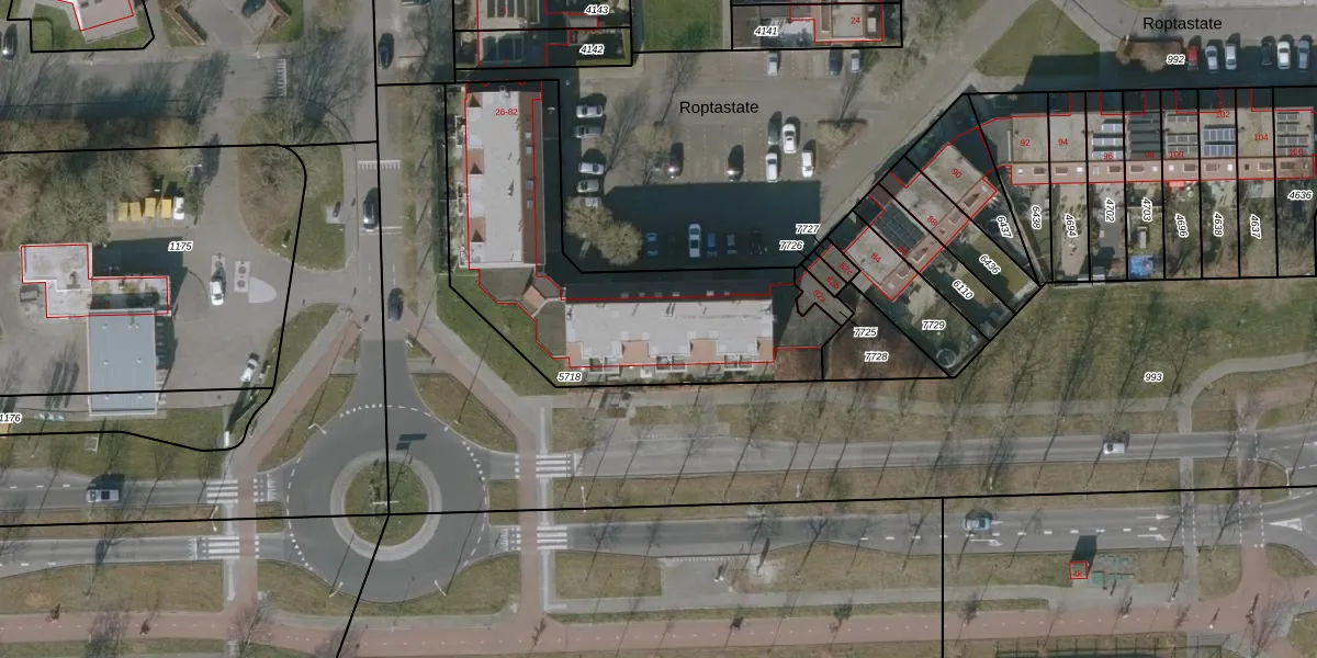 Roptastate 54 is gelegen op kadastraal perceel LWD00K5718. Deze kadastrale aanduiding is uniek en wordt gebruikt door het Kadaster om eigendomsrechten en andere zakelijke rechten vast te leggen. Het perceel maakt onderdeel uit van de kadastrale gemeente Leeuwarden.