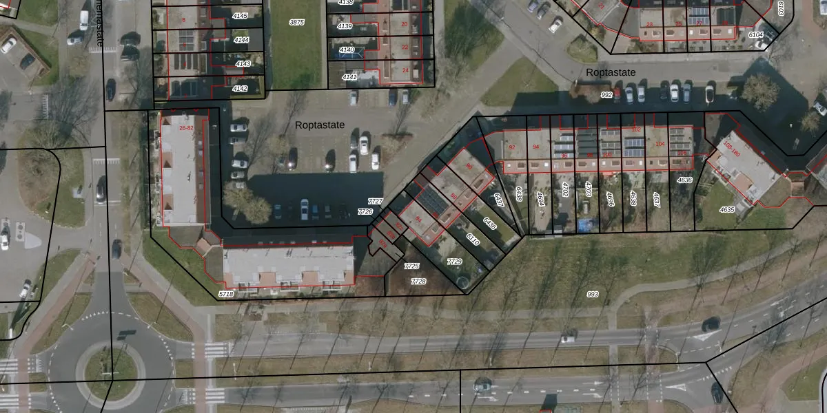 Roptastate 84 is gelegen op kadastraal perceel LWD00K7729. Deze kadastrale aanduiding is uniek en wordt gebruikt door het Kadaster om eigendomsrechten en andere zakelijke rechten vast te leggen. Het perceel maakt onderdeel uit van de kadastrale gemeente Leeuwarden.